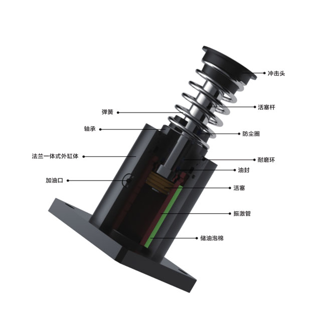 安裝要求:緩沖行程在300mm以內(nèi),較大允許側(cè)負荷角度為2.5°;緩沖行程為300mm以上,較大允許側(cè)負荷角度為1°;確保螺栓螺母鎖緊牢固,建議使用螺紋膠。